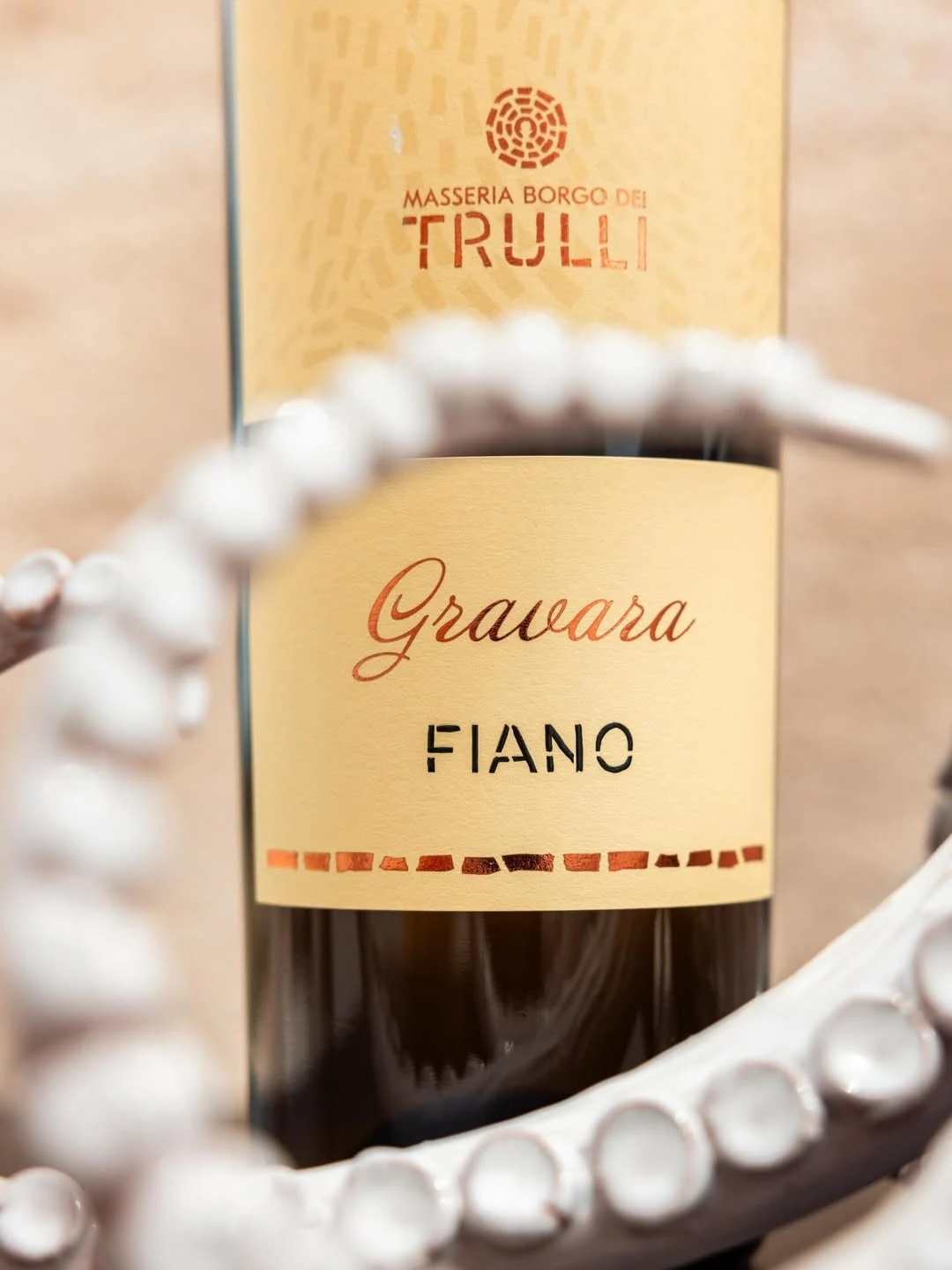 Le uve di fiano vengono selezionate da vigneti a bassa resa nel comune di Maruggio in località Gravara.